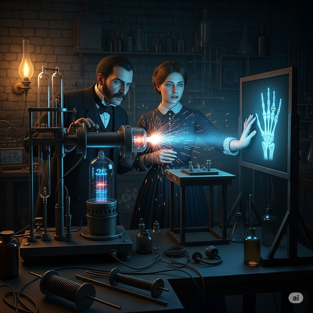 1895년 11월 8일, 독일 뷔르츠부르크 대학의 물리학 교수 빌헬름 콘라트 폰 뢴트겐은 어두컴컴한 실험실에서 전에 본 적 없는 기이한 현상을 목격합니다. 진공관에 높은 전압을 걸어 실험을 하던 중, 주변에 놓여 있던 형광 스크린에서 희미한 빛이 새어 나오는 것을 발견한 것입니다. 진공관은 두꺼운 검은 종이로 완전히 덮여 있었고, 당시까지 알려진 빛은 그 어떤 것도 통과할 수 없었습니다. 뢴트겐은 이 정체불명의 광선에 'X선(X-ray)'이라는 이름을 붙였습니다. 그리고 며칠 후, 이 불가사의한 빛은 그의 아내의 손뼈를 세상에 드러내는 '소름 돋는' 사진을 탄생시키며 인류의 역사를 영원히 바꿔놓게 됩니다.