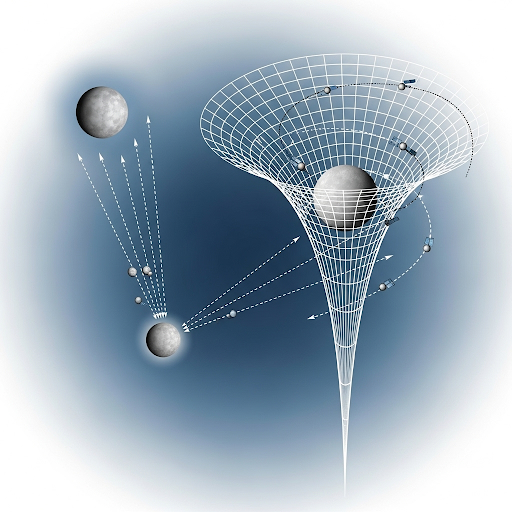 쉽게 말해, 지구가 사과를 잡아당기는 게 아니라, 지구가 시공간을 휘게 만들어서 사과가 그 휘어진 길을 따라 떨어지는 거였어요! 마치 볼링공이 놓인 매트리스 위에서 구슬이 굴러가는 것처럼 말이죠.